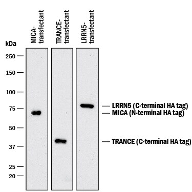 - HA Antibody Recognizes HA-tagged proteins overexpressed in cells, including both amino- and carboxy-termini of targeted proteins in transfected mammalian cells.