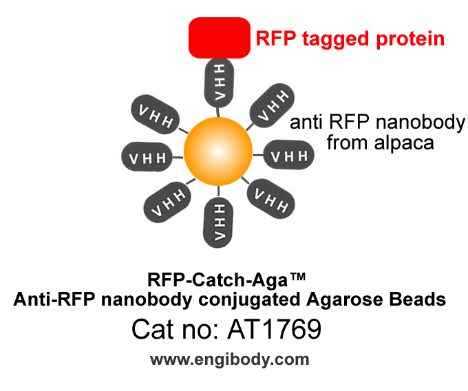 - RFP-Catch-Aga™ Anti-RFP tag nanobody (from alpaca, VHH, Single Domain antibody) conjugated Agarose Beads